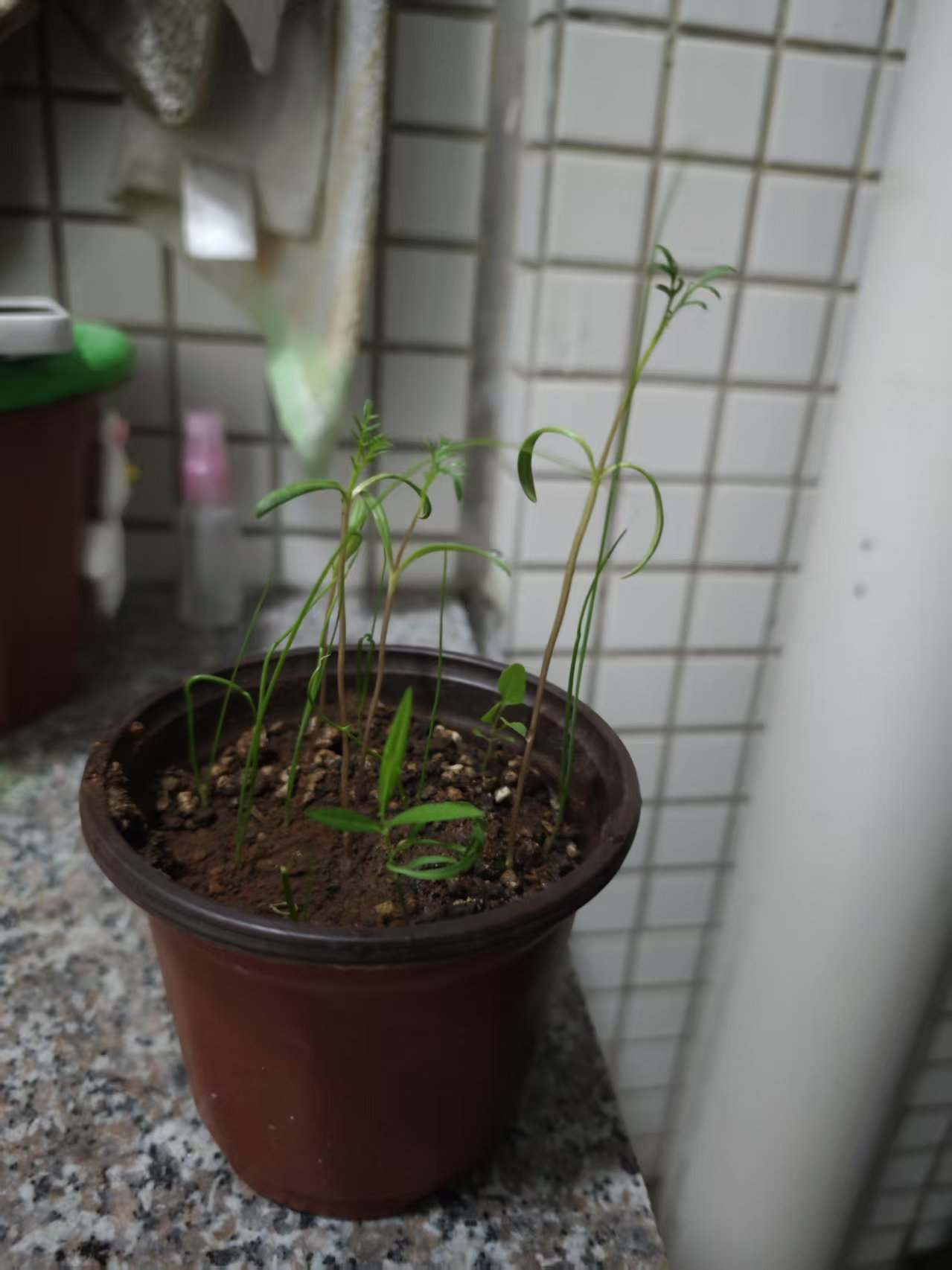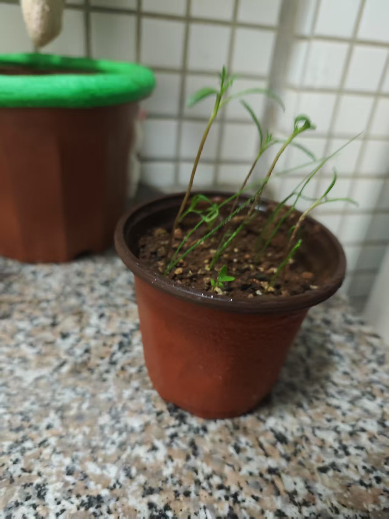 哇!今天波斯菊幼苗的变化超明显~它们又长高了不少,细长的茎秆更挺拔,叶片也愈发翠绿鲜亮,像是精心雕琢的绿宝石。