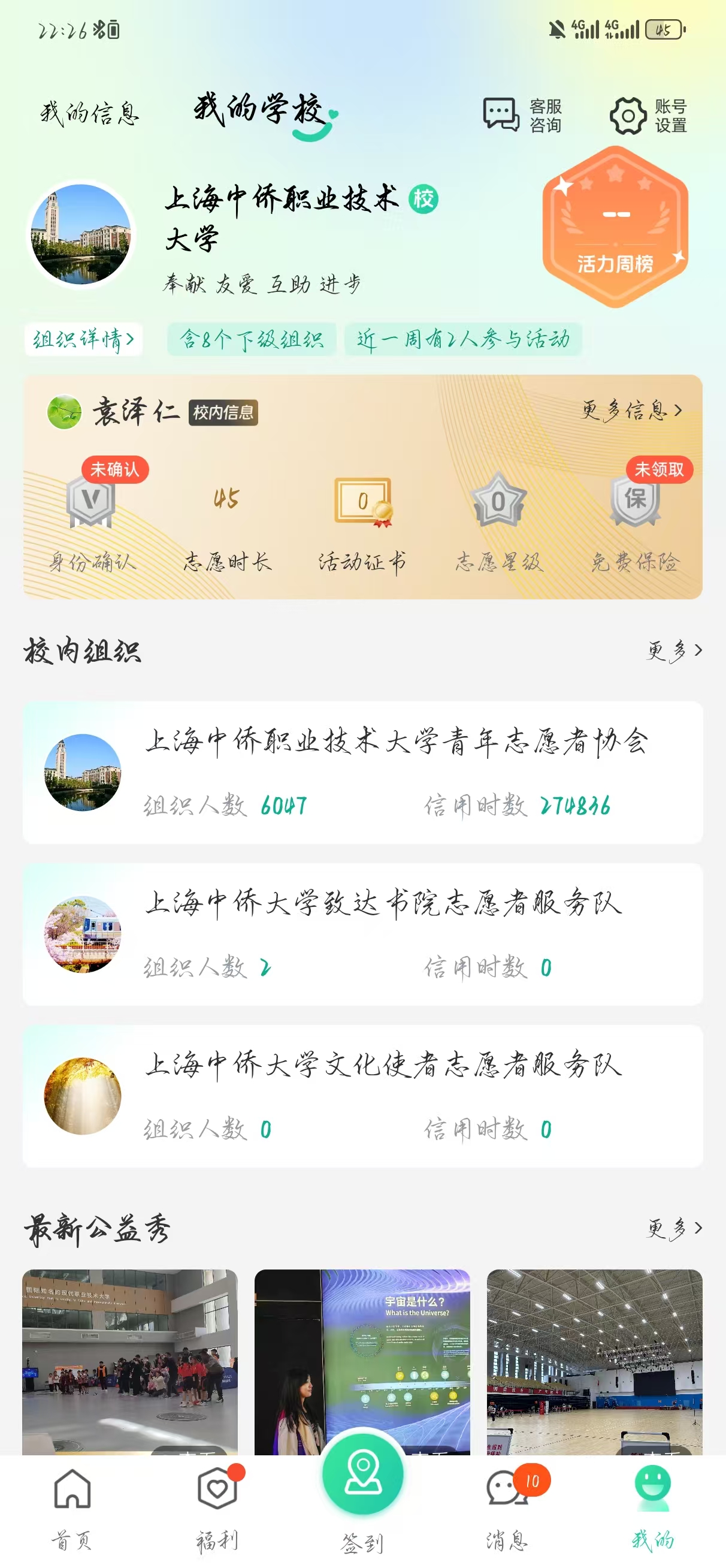 在志愿服务这条充满温暖与奉献的道路上,袁泽仁始终以饱满的热情和坚定的责任感投身其中,用实际行动诠释了“奉献、友爱、互助、进步”的志愿精神。无论是带领小朋友探索自然、为游客讲解科学知识,还是接待重要嘉宾、关爱特殊儿童,亦或是在校园内组织参加各类志愿活动,他都以积极主动的态度和细致周到的服务赢得了广泛赞誉。 在海防夏立营活动中,他担任志愿者领队,带领一群活泼可爱的小朋友开展了一系列富有教育意义的户外活动。从清晨的集合到傍晚的返程,他始终耐心细致地照顾每一位孩子,确保他们的安全与快乐。活动中,他设计了趣味横生的团队游戏,引导孩子们学习海防知识,培养他们的团队协作意识和爱国情怀。面对个别害羞或调皮的孩子,他总能以温和的方式化解问题,让每个孩子都感受到关怀与鼓励。活动结束后,许多家长特意发来感谢,称赞他的责任心和亲和力让孩子们的假期更加难忘。 在上海天文馆担任导览讲解志愿者期间,袁泽仁凭借者他认真的培训以及出色的表达能力,为游客们带来了生动有趣的科普讲解。为了确保讲解内容的准确性和吸引力,他提前查阅了大量资料,并多次实地演练。面对游客提出的各类问题,他总是耐心解答,甚至主动延伸讲解内容,让参观者收获更多知识。他的专业与热情,让许多游客对天文馆留下了深刻印象。 在浦江论坛志愿者活动期间,袁泽仁作为接待的志愿者,负责迎接国内外嘉宾,协助会务组完成各项接待工作。他提前熟悉了论坛流程和嘉宾信息,准备好相应的欢迎词,最终以流利的英语和得体的礼仪为外国友人提供引导和帮助。面对突发状况,他冷静应对,迅速协调解决,确保嘉宾的行程不受影响。面对因语言不通而困扰的外国友人,他会主动上前协助翻译,并陪同其完成剩余的工作,也因此赢得了对方的连连称赞。他的细致服务和灵活应变能力,为论坛的顺利进行贡献了重要力量。 在“向阳计划”关爱自闭症儿童的活动中,袁泽仁展现了极大的耐心和爱心。他提前接受了专业培训,学习如何与自闭症儿童沟通交流。活动中,他陪伴孩子们做手工、玩游戏,用温柔的语言和鼓励的眼神慢慢建立起信任。有一次,一位孩子因环境陌生而情绪激动,他也没有急于干预,而是静静陪伴在孩子的身边直到孩子平静下来。他的细心和包容让在场的老师和家长深受感动。活动结束后,他主动总结反思,希望能为这些特殊儿童提供更有效的帮助。 在校园内,袁泽仁也是志愿活动的积极组织者和参与者,他策划并执行了多次校内志愿活动,积极参加了多次“到梦空间”的活动。无论是活动前的策划筹备,还是现场的组织协调,他都全力以赴,确保活动顺利开展。他的领导力和奉献精神感染了许多同学,带动更多人加入志愿服务的行列。同时也会继续更加积极主动的让自己投身于志愿者活动当中。 袁泽仁的志愿者经历丰富而多彩,每一次服务都体现了他对社会的责任感和对他人无私的关怀。他始终相信,志愿服务不仅是帮助他人,更是自我成长的过程。未来,他将继续以饱满的热情投身公益事业,用实际行动传递温暖与正能量。