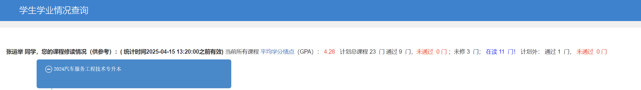 张运举始终以严谨的态度对待学业,2024—2025学年第一学期综合测评位列班级前列,平均分85+, 目前GPA为4.28。他将学习方法总结,帮助同学解决学习困难。