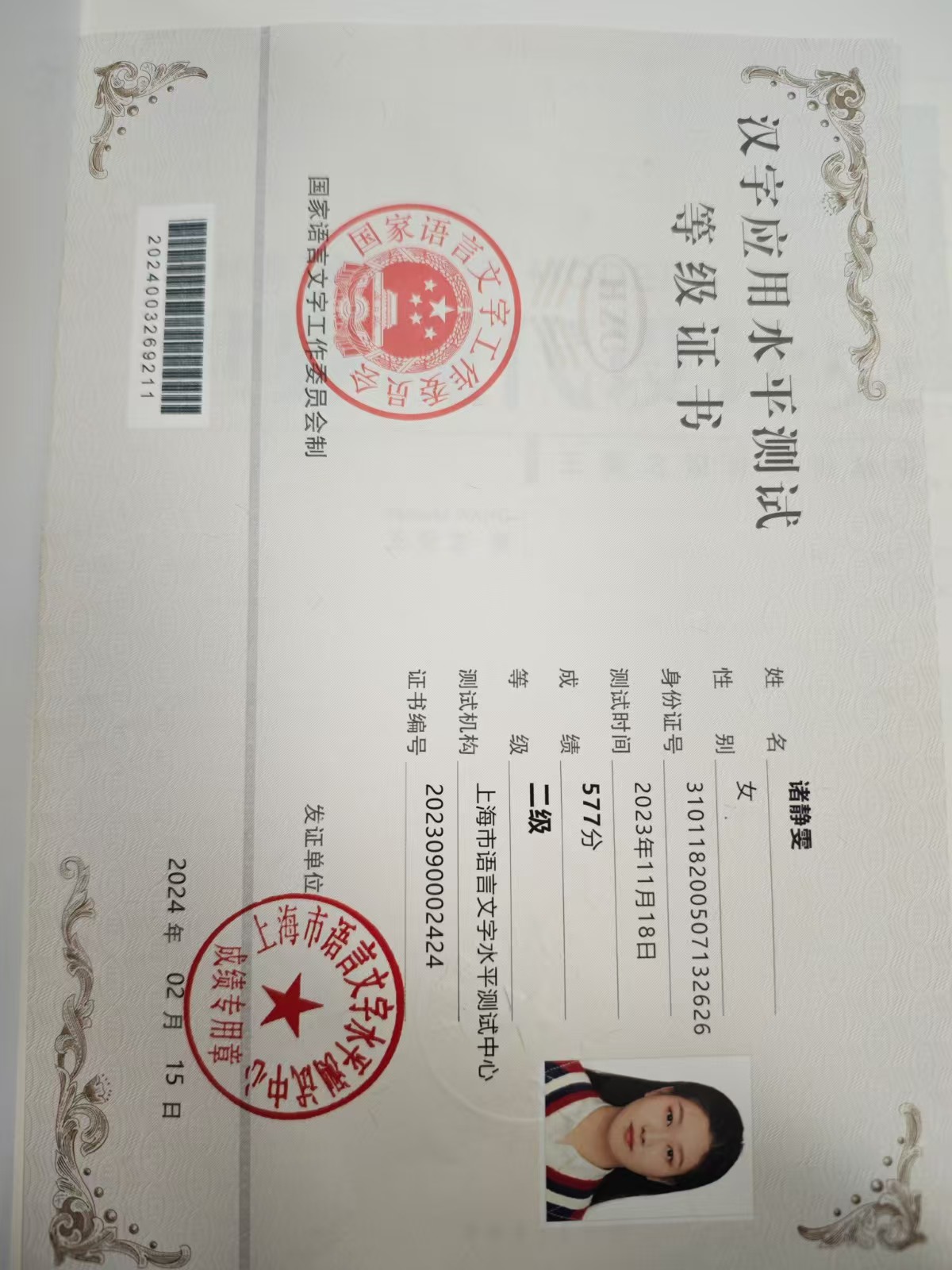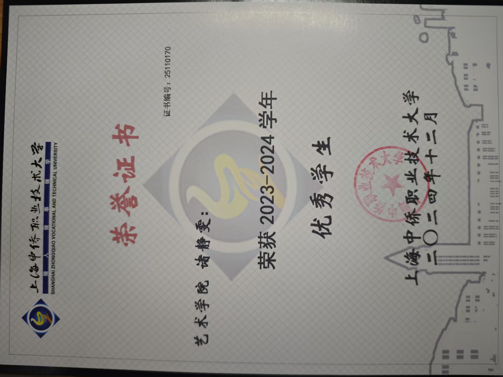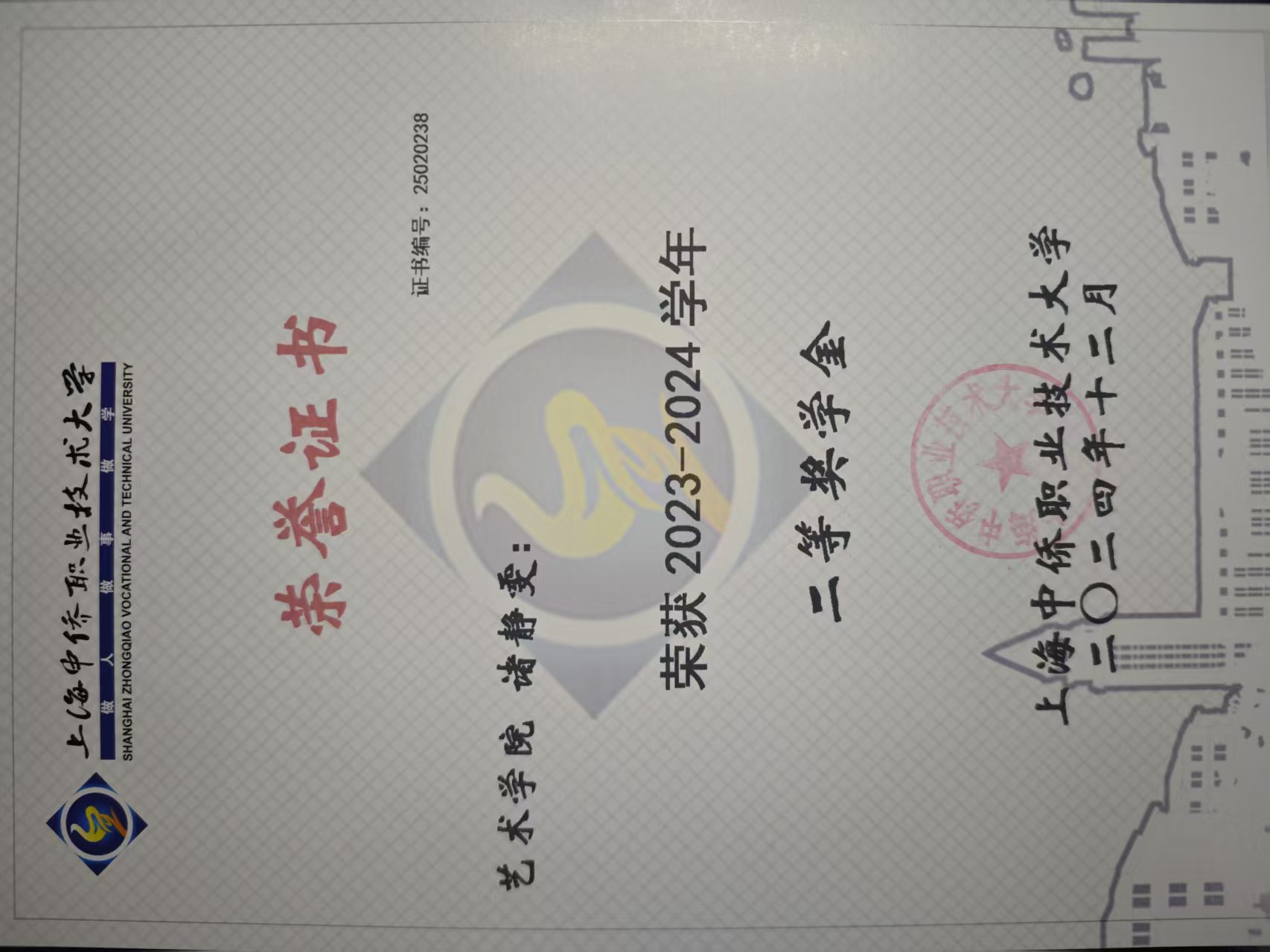 在学习上,她始终以高要求要严格自己,曾获2023-2024学年校级二等奖学金,2023-2024学年优秀学生称号,在保证自己的专业综合成绩始终保持班级前列的同时,于课余时间不断提升自己,前后已获得了汉字应用水平测试二级证书,全国计算机一级等级证书,普通话二乙水平证书,并通过英语四级水平考试。在专业上,她深知“行远自迩,笃行不怠”的道理,精通PS、AI、ID等专业软件,她以扎实的专业知识为工具,荣获2024年度张堰镇“法润留溪”法治文化作品征集评选活动优胜奖奖项。