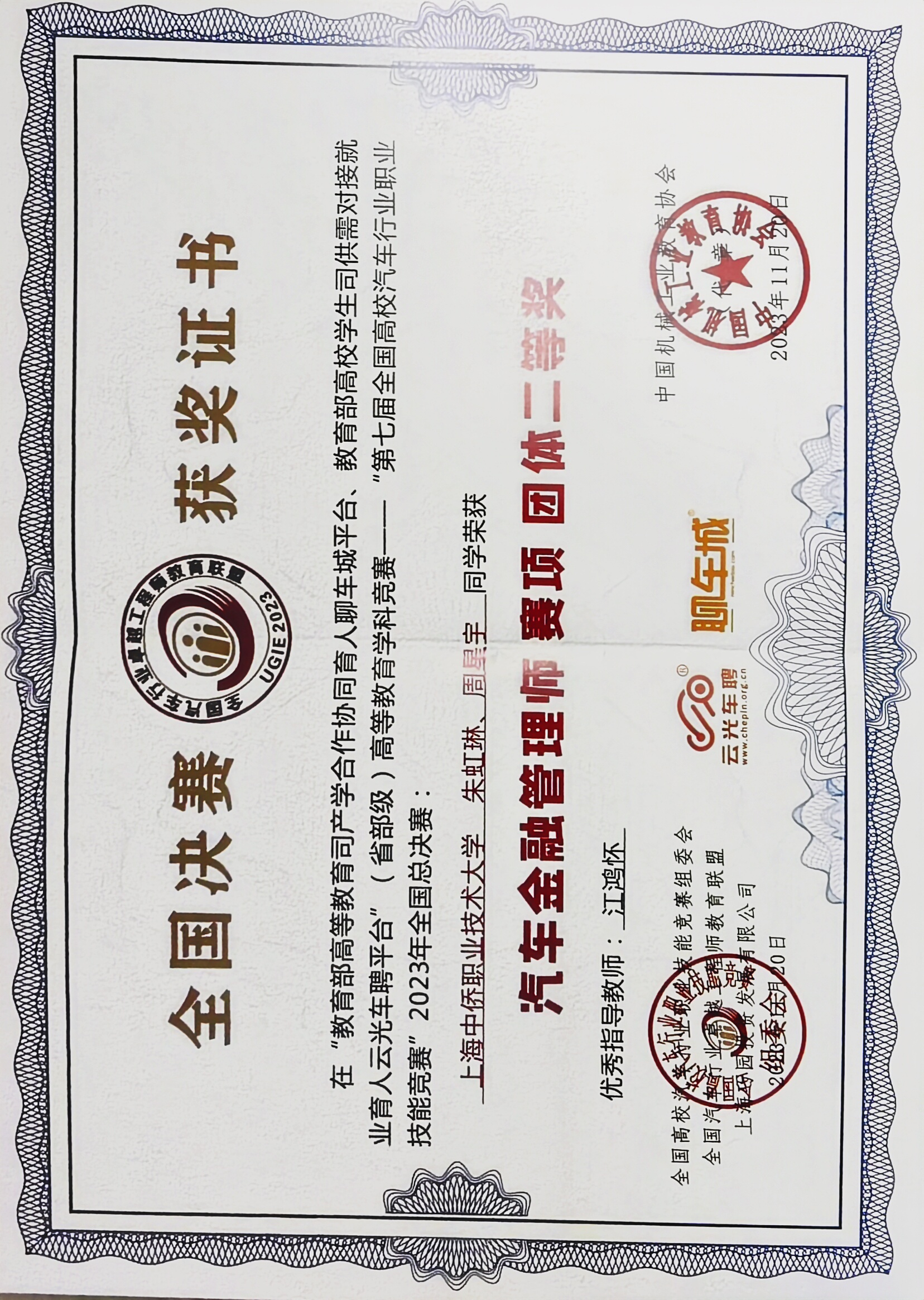 凭借着这种勤勉专注的学习态度和对理论与实践相结合的深刻理解。她在全国性的汽车比赛中屡获佳绩。在全国汽车金融管理师赛项中,她与团队成员紧密合作,凭借着对汽车金融市场的深入理解和精准分析,以及对金融管理工具的熟练运用,最终荣获团体二等奖的殊荣。在全国全国高校汽车行业新技术应用技能竞赛暨全国大学生汽车智慧云双创大赛2024年全国总决赛中,她凭借扎实的专业知识和敏锐的洞察力,与团队成员一起,对车辆进行精准的评估和鉴定,最终荣获团体三等奖。这些荣誉的取得,不仅是对她个人能力的肯定,更是对她多年来刻苦学习和实践探索的最好回报。