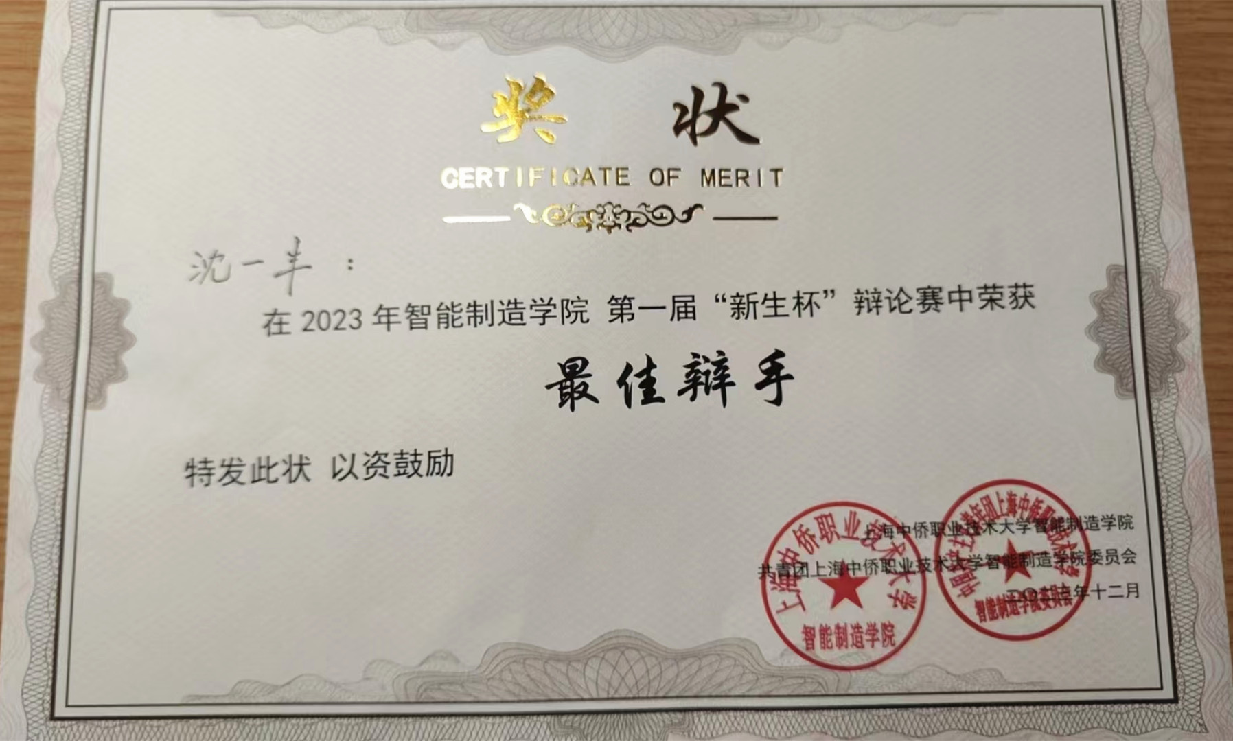 沈一丰同学不仅志愿服务突出,在学术竞赛和校园活动中同样表现优异。他曾荣获校创新创业大赛优胜奖,其项目聚焦智能制造领域创新应用,展现了扎实的专业功底和实践能力。在智能制造学院第十八届新生杯辩论赛中,他凭借缜密的逻辑思维和出色的临场发挥荣获"最佳辩手"称号,其"辩以求真,真以明志"的参赛理念成为校园文化建设的典范。多元发展的社会服务经历