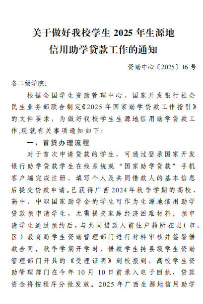 关于做好我校学生2025年生源地信用助学贷款工作的通知