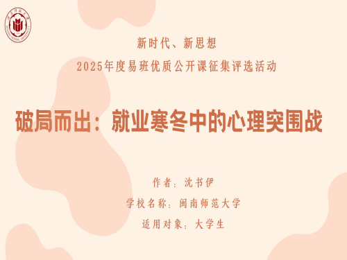 本课程通过分析就业寒冬中的三大心理迷雾——信息茧房、社会时钟和路径依赖,引导学生打破认知局限,重塑积极心态。内容涵盖成就清单记录、职业生涯三叶草模型的应用以及构建求职支持系统等实用方法,助力学生提升心理韧性,制定个性化突围计划。课程结合真实案例、互动动画和模拟对话,生动呈现心理突围策略,为学生提供温暖而有力的支持。